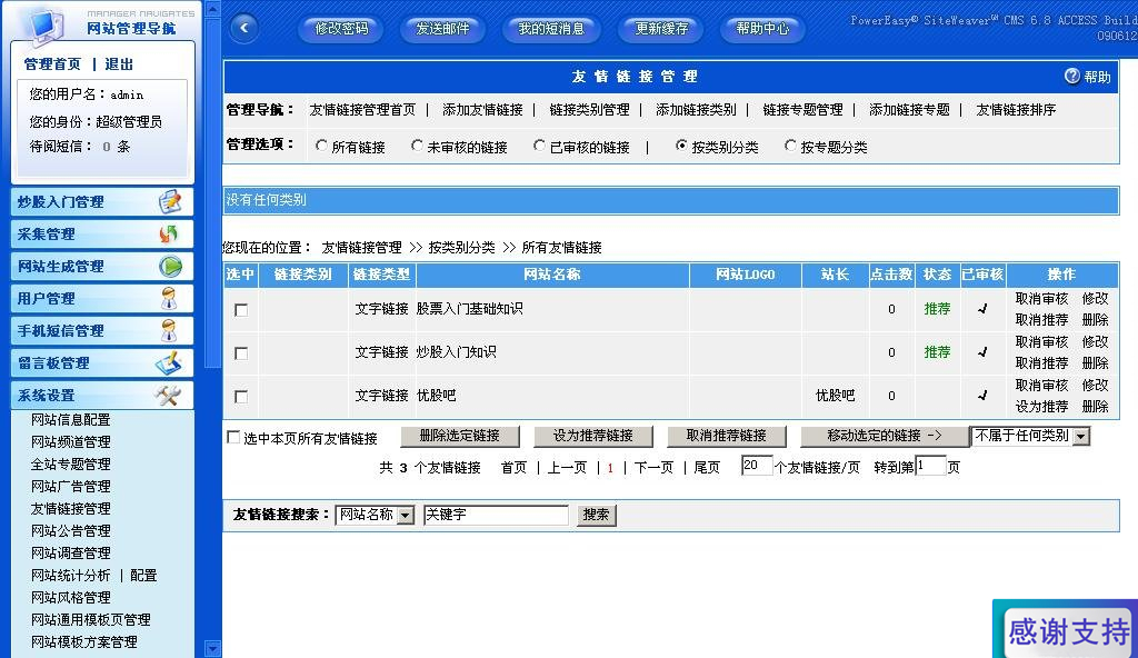 你只要下载本程序——上传空间——修改基本信息——生成——就可以建一个股票入门资料最全面的门户网站