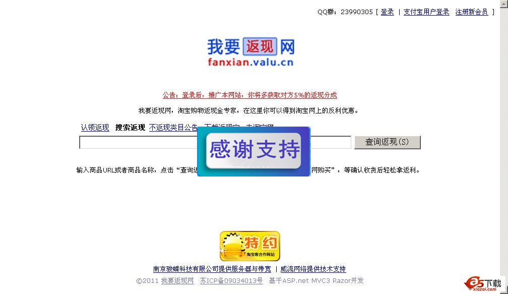淘宝客返现程序(淘客反利)整合支付宝用户登录,注册会员可以推广本网站。用户登录后自动返现。