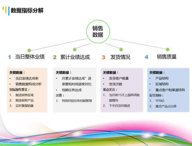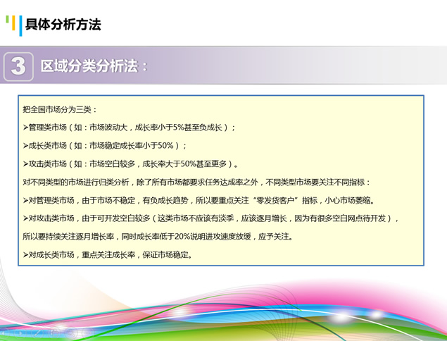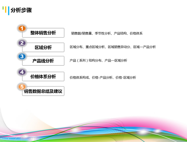 简介:主线&指标、分析思路、整体分析、分析方法,销售数据分析,提升销售业绩炫彩激情学习培训ppt模板。